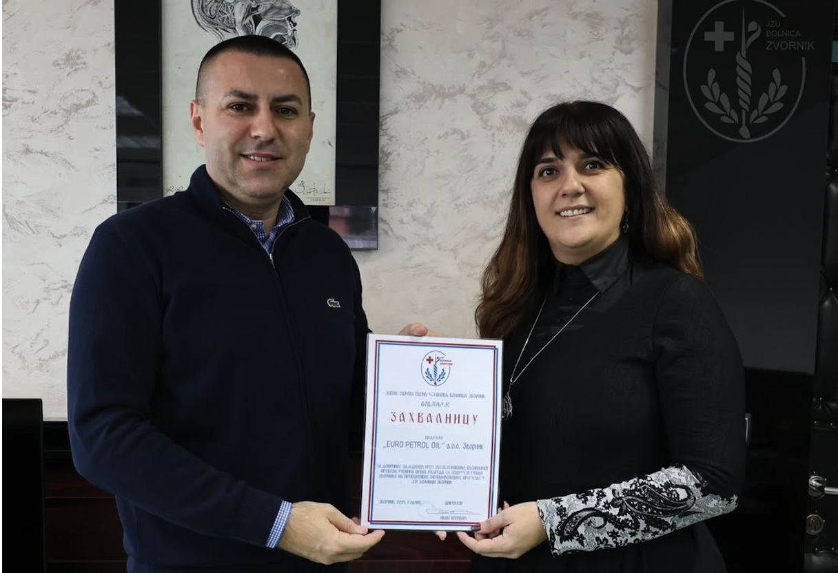 Predstavnica kompanije Euro Petrol Oil d.o.o. Zvornik, Ivana Tanacković, posjetila je danas JZU Bolnicu Zvornik…